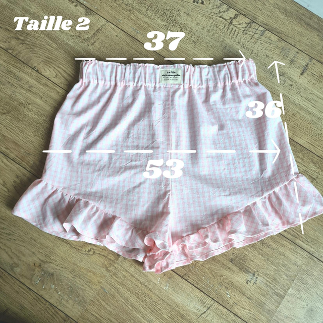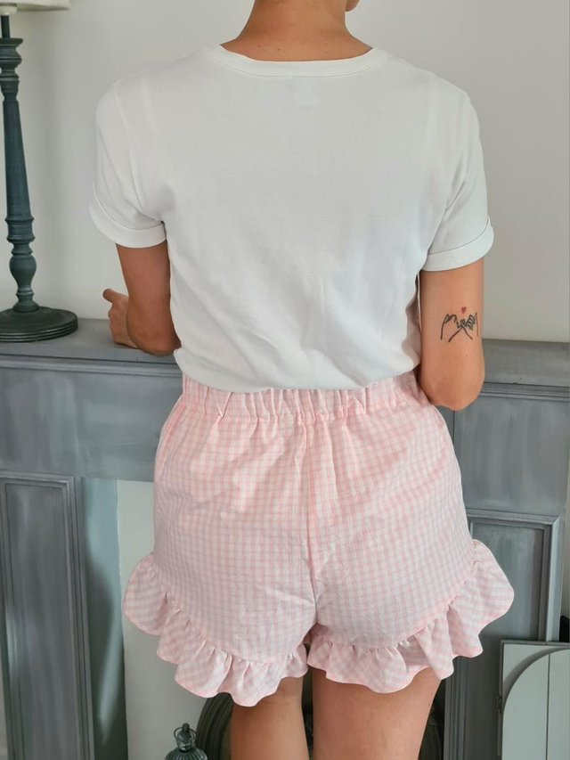 Short à volants en tissus upcyclés vichy rose